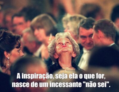 Semana sim, outra também, a poeta polonesa Wislawa Szymborska está ao meu lado no sofá, na mesa de trabalho, nas redes sociais. Ela é uma presença na minha vida, alguém que quero ter para sempre por perto para filosofar, rir, chorar, para me inspirar. Preciso da companhia de pessoas inspiradoras e simples, com um olhar gentil e realista, lúdico e pé no chão para a vida. Acredito que uma vida de alumbramentos e de “não sei”, além de ser possível para além dos textos impressos em livros, é algo a se almejar, humaniza. E você, o que acha?
