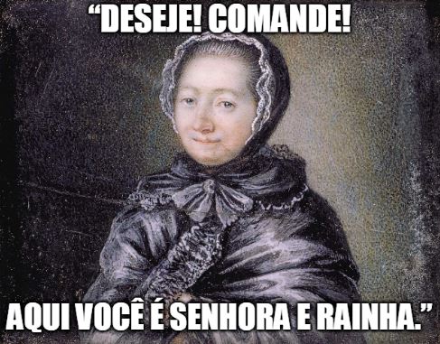 escrita com letras de ouro, a seguinte frase: “Deseje! Comande! Aqui você é senhora e rainha”. Empoderamento, minha gente!
